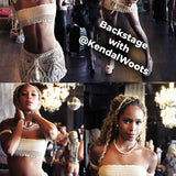 The tops are dramatically different in style but made of the same handcrafted crochet. One a more tube top styled with roped arm cuffs which you can choose to remove. The other has a more regal ensemble. We often see our models wearing these in very unique ways, some wear the top backwards with the ropes in front. You can get really wild when you start mixing and matching this collection. You can change your look and intrigue every time you wear something from this set.